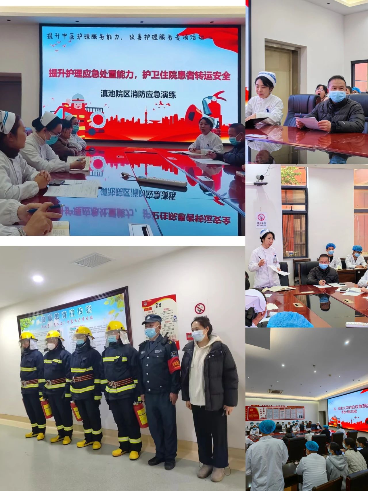 2023.12.29为强化护理安全管理,切实加强护理人员的消防安全意识,规范疏散流程及护理工作职责,提高火灾时的应急处理及逃生能力,12月28日下午,云南省中医医院/云南中医药大学第一附属医院护理部联合保卫科开展了第四季度护理查房——病区火灾消防应急演练。此次演练由护理部组织、滇池片区护理团队共同协作策划完成,共30余名护理骨干人员参加演练及汇报。