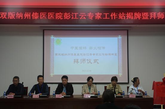 2023.12.29为了更好的开展傣医传承、创新工作,快速提升整体素质和专科综合服务能力和科研水平,西双版纳州傣医医院特邀请彭江云全国名老中医专家传承工作室团队到我院建立二级工作站。12月6日,“彭江云全国名老中医专家传承工作室二级工作站”揭牌暨拜师仪式在西双版纳州傣医医院举行。