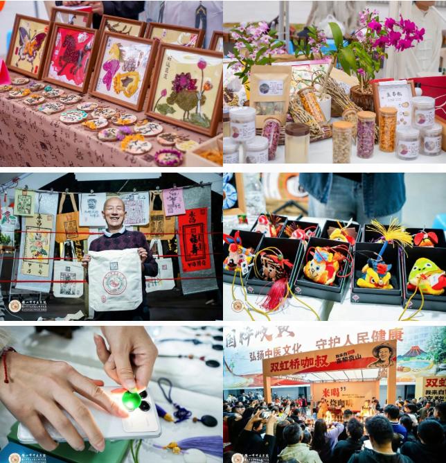 中药文创市集好物荟萃,助眠安神枕、腰垫、桑枝棒、中药杯垫、中药手串等各式中药文创产品融创意与实用为一体,缤纷登场,让千年本草文化以新潮灵动的模样走进日常。保山市紧密型城市医疗健康集团中医药管理协同中心6家成员单位带来的中医特色产品,也引得众多市民驻足观赏、细细探寻。非遗集市中,保山本土非遗传承人携匠心佳作齐聚,精巧的非遗手作、地道的传统技艺与中医药文化相融相契、交相辉映。双虹桥咖叔现场现烤火烧咖啡,焦香醇厚、香气绵长,成为全场热门打卡地之一,市民络绎不绝排队打卡、品味醇香。