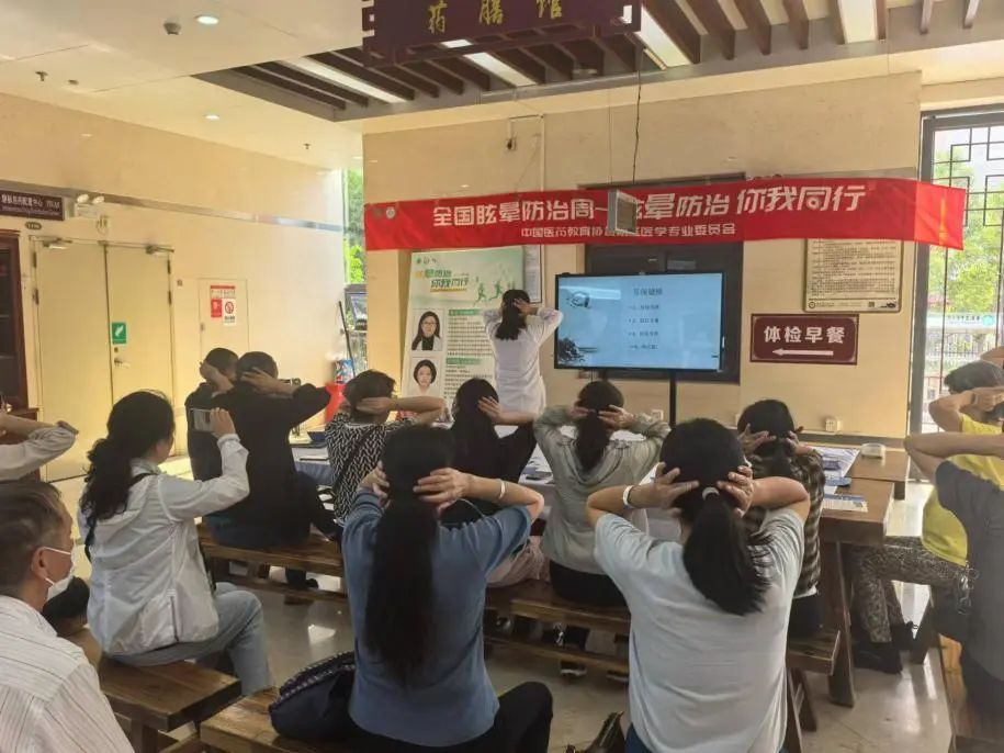 2024.08.158月8日—14日为中国医药教育协会前庭医学会拟定的全国眩晕防治周,全国五十余家三甲医院一起联动,利用多种形式普及眩晕知识。作为中国医药教育协会前庭医学专委会规范化诊疗云南基地依托单位,云南省中医医院/云南中医药大学第一附属医院滇池院区耳鼻喉科联合滇池耳鼻喉党支部在8月13日对眩晕病人组织开展了义诊、咨询、体验中医治疗、科普讲座、跟学八段锦等多项活动为内容的眩晕防治周活动和主题党日活动,得到广大眩晕患者的赞许和一致好评。